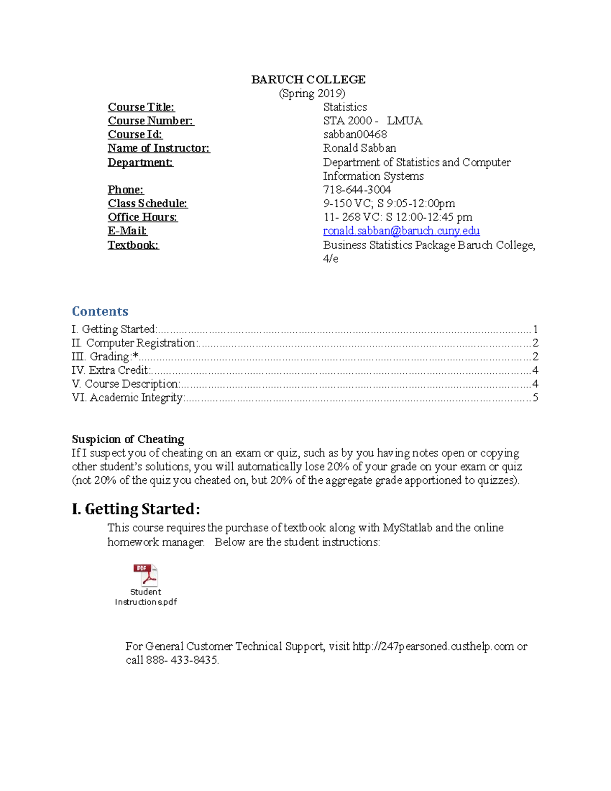 Stat 2000 R Sabban Syllabus Spring 2020 Baruch College Spring 2019 Course Title Statistics Studocu